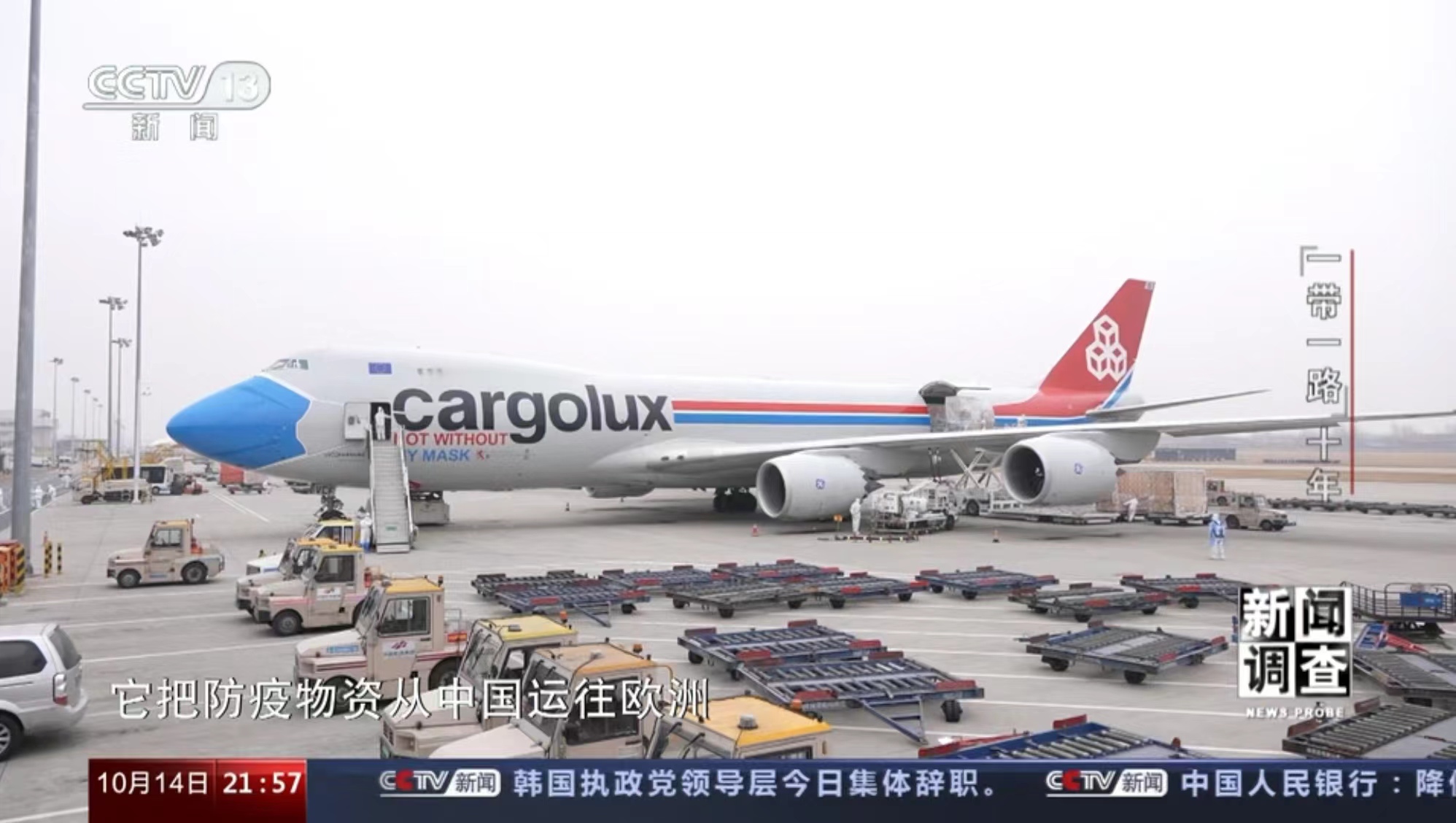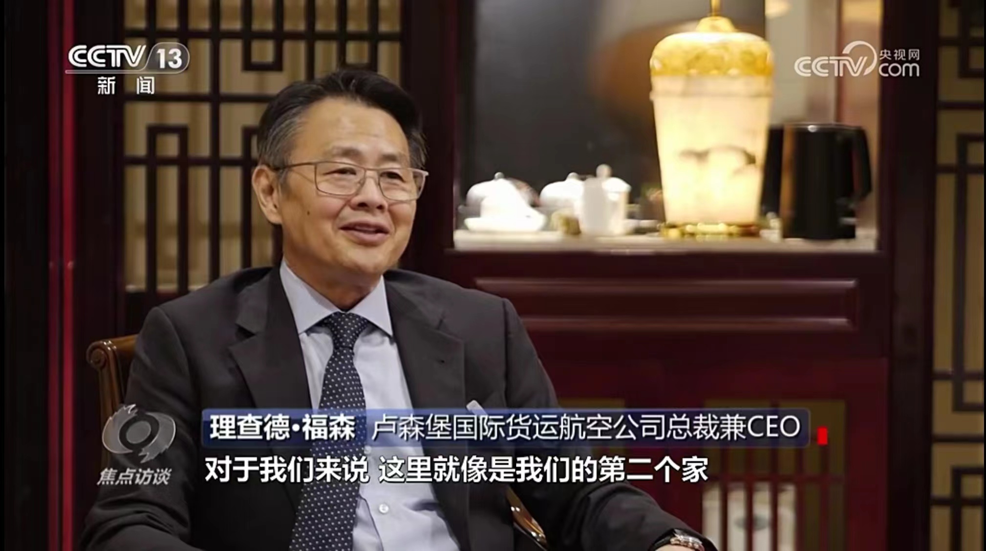 10月11日,央視《焦點(diǎn)訪談》播發(fā)系列報(bào)道“絲路同行”第一集——雙向奔赴的繁榮之路。報(bào)道中說(shuō),“一帶一路”倡議的提出,讓河南明確了突破區(qū)位限制、向藍(lán)天要效益的開(kāi)放思路。通過(guò)采訪河南航投集團(tuán)黨委書(shū)記、董事長(zhǎng)張明超和盧森堡貨航董事會(huì)主席湯姆·維斯格伯、總裁兼CEO理查德·福森,報(bào)道回顧了鄭盧“空中絲綢之路”十年探索實(shí)踐和豫盧之間的友好情誼。節(jié)目評(píng)論道:“(河南航投與盧森堡貨航)之間早已超越了生意伙伴這一簡(jiǎn)單的關(guān)系,多年的合作讓鄭州與盧森堡兩個(gè)航空樞紐之間的互聯(lián)互通真正實(shí)現(xiàn)了彼此雙方互利共贏和美美與共。這一切都在詮釋著‘一帶一路’倡議的核心要義?!?