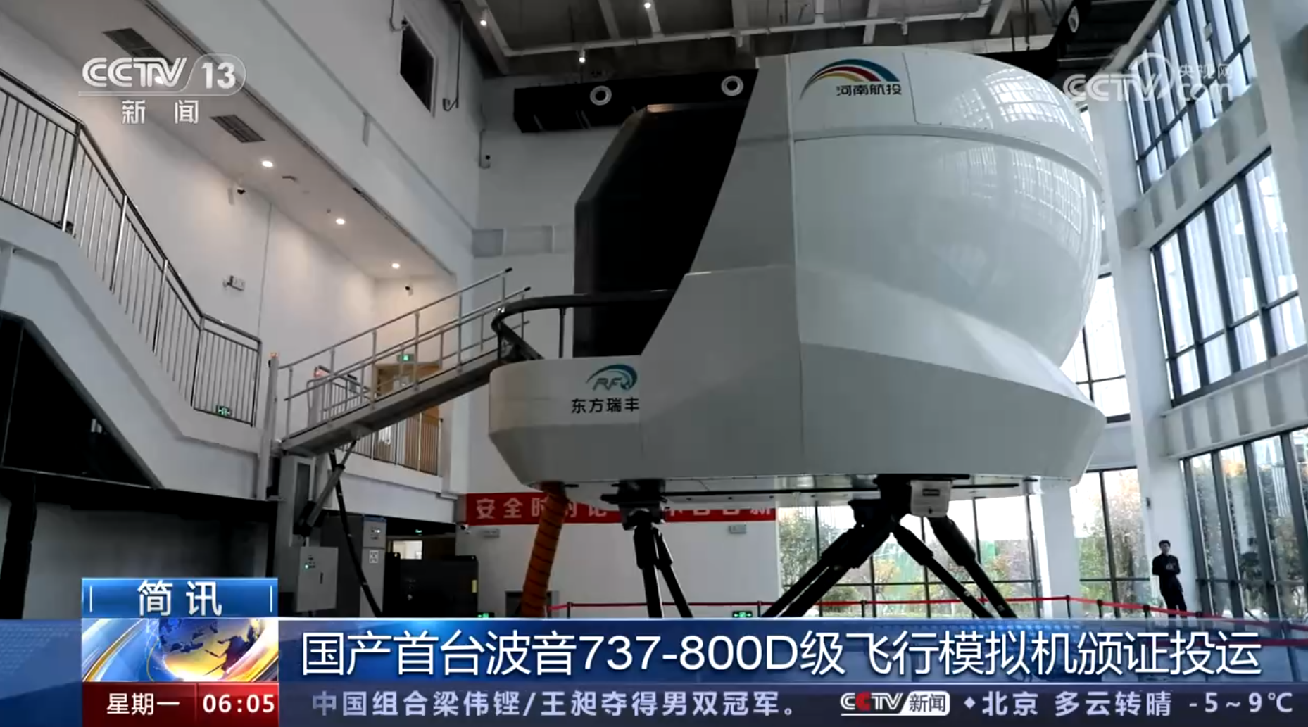 【央視朝聞天下】國產(chǎn)首臺(tái)波音737-800D級飛行模擬機(jī)頒證投運(yùn)
