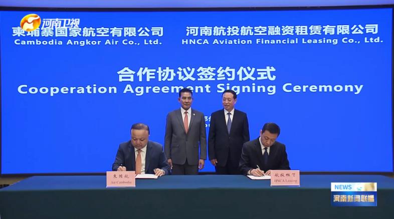 11月2日上午,河南航投航空融資租賃有限公司(以下簡稱航投租賃)與柬埔寨國家航空公司簽署融資租賃合作協(xié)議,開展跨境飛機租賃業(yè)務。省委常委、常務副省長孫守剛與柬埔寨民航國務秘書處大臣兼柬埔寨國家航空公司董事會主席毛哈萬納共同見證協(xié)議簽署。