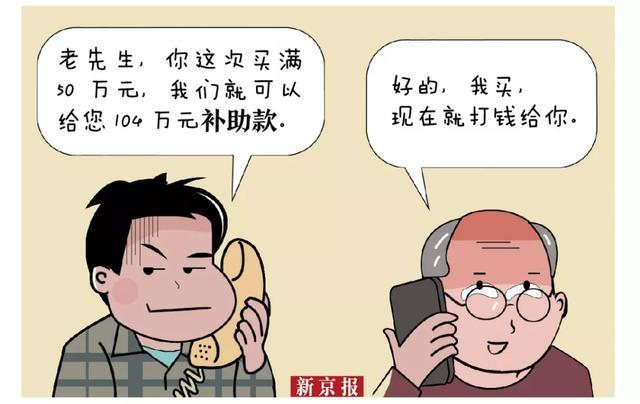 案例:70歲的劉某接到一個“保健專家”的電話,經忽悠,劉某買了一萬多元的保健品。然而,對方又稱只要購滿50萬元,即可獲得補助款104萬元。當劉某真的購買了遠超50萬元的保健品后,那個從未謀面的專家再也聯系不上了。