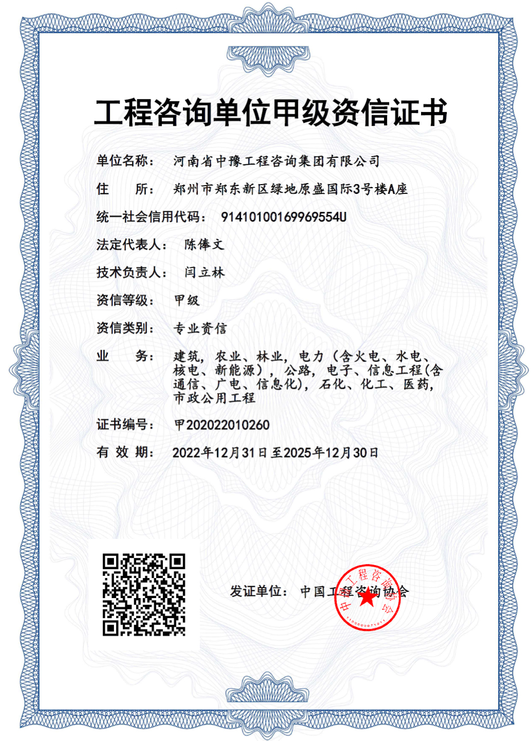 工程咨詢資信等級是衡量工程咨詢企業(yè)綜合實力的重要標(biāo)志,也是工程咨詢企業(yè)發(fā)展的重要基石。甲級綜合資信可以作為所有專業(yè)規(guī)劃咨詢和評估咨詢業(yè)務(wù)能力的參考。目前,中豫咨詢集團已獲得工程咨詢單位甲級綜合資信和7個甲級專業(yè)資信,企業(yè)綜合實力邁上新臺階。