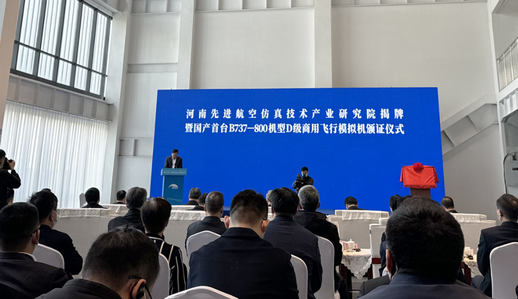 11月26日,河南先進航空仿真技術產業(yè)研究院揭牌暨國產首臺B737-800機型D級商用飛行模擬機頒證儀式在河南航投航空培訓中心舉行。省委書記樓陽生出席并講話。樓陽生為河南先進航空仿真技術產業(yè)研究院揭牌。中國工程院院士趙沁平受聘擔任研究院專家技術委員會主任。中國商用飛機有限責任公司黨委書記、董事長賀東風,省領導孫守剛、陳星、安偉、劉尚進出席。