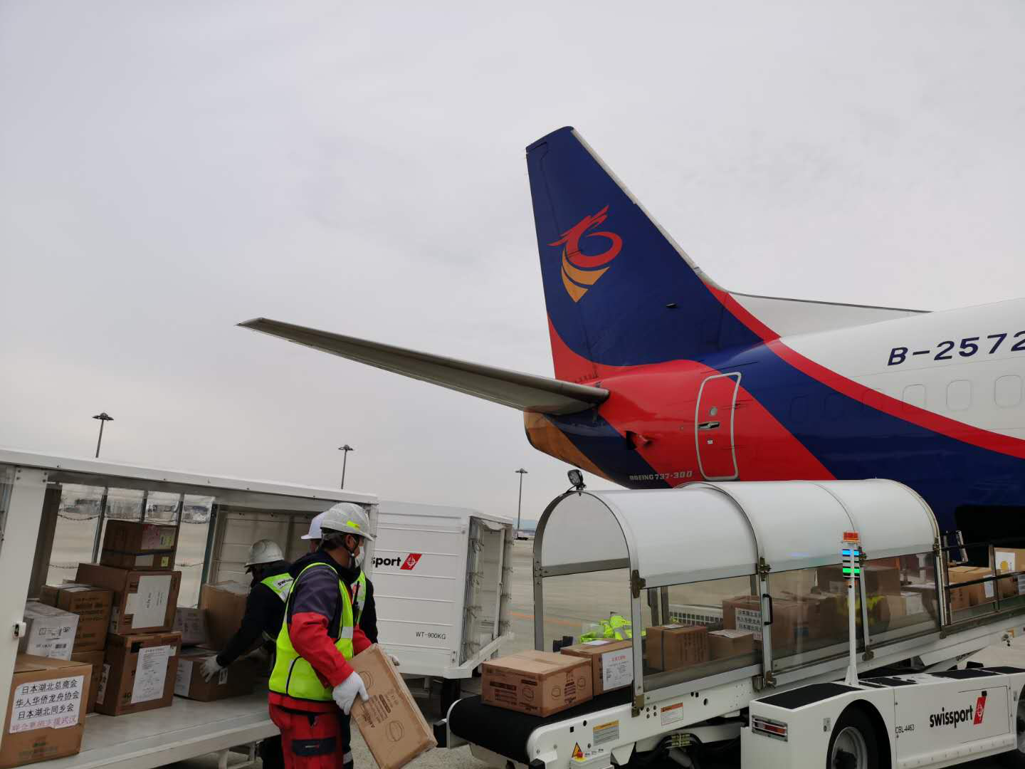 2月7日晚7時,中原龍浩航空有限公司(以下簡稱中原龍浩航空)的B737-300全貨運飛機,滿載1160箱醫(yī)用物資,由日本大阪機場抵達(dá)武漢天河機場,為湖北人民送去目前最亟需的防疫物資。這是中原龍浩航空在抗擊疫情過程中執(zhí)行的第二架次貨運包機。